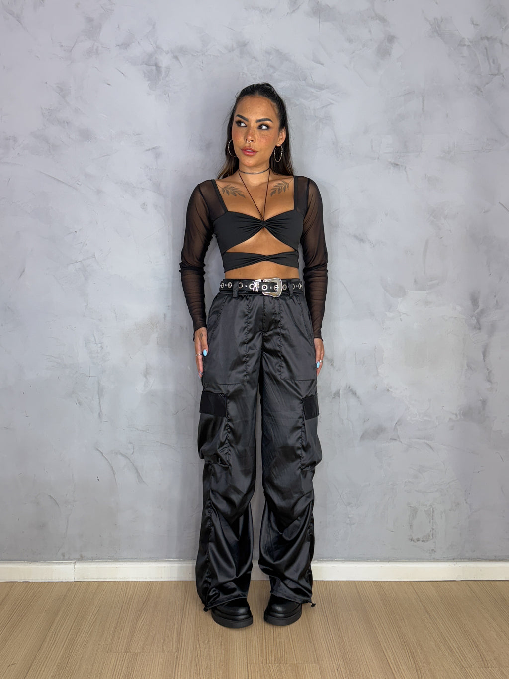O cropped Emilly vem na composição do tecido de tule com o tecido suplex, aquela combinação que amamos! Amarração no elástico roliço dando um toque mais delicado e para finalizar essa perfeição detalhe de faixa torcida dando um charme.