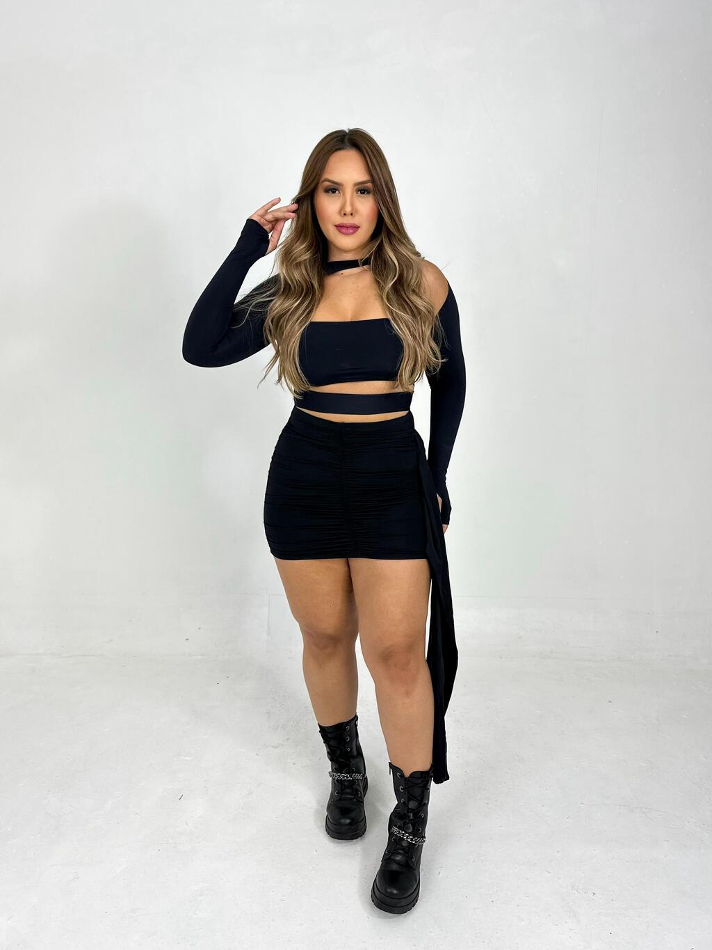 A saia lenço vem no tecido poliamida, com drapeado frontal, detalhe em lenço na lateral, disponível no tamanho único