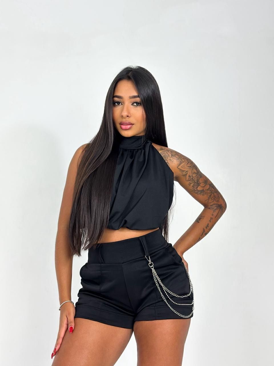 O Short Duda, vem no tecido neoprene com elastano, bolsos frontais e passador para cinto.